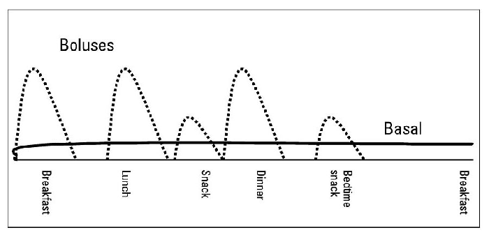 This is also known as ‘basal-bolus’. People using this approach have two different types of insulin.